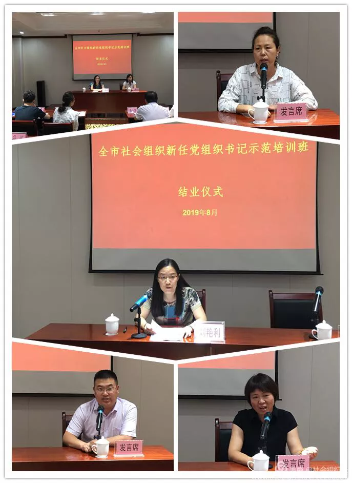 ★社会组织处处长刘艳利同志主持召开全市社会组织新任党组织书记示范培训班结业仪式,并邀请部分学员代表发言。